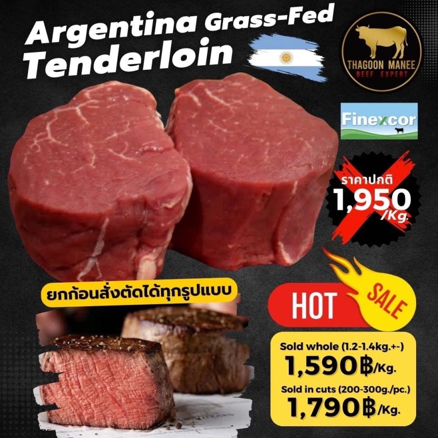 Argentina Tenderloin เนื้อเพื่อสุขภาพ organic 100% รสชาติหอมนุ่มเข้มข้น Argentina Tenderloin: สัมผัสความนุ่มลึก สไตล์ Grass-fed แท้จากอาร์เจนตินา รสชาติเนื้อสะอาด (Clean Flavor) ที่แตกต่างจากสันในทั่วไป เสน่ห์แห่งทุ่งหญ้า Pampas